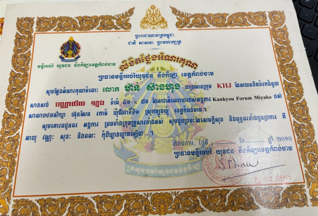 - カンボジア政府からの感謝状の贈呈